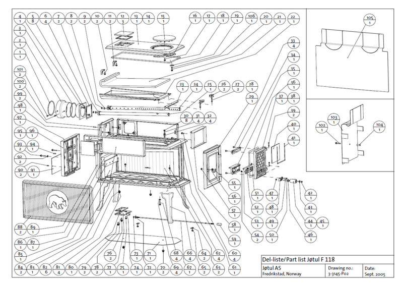 Overzicht artikelenTodos los repuestos para las series Jotul F 118 CB - El modelo más nuevo con postcombustión , no el 118 N