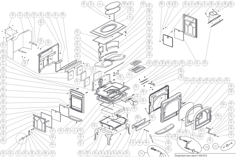 Overzicht artikelenTodas las piezas de repuesto para la serie Jotul F 500 ECO (El nuevo modelo 2021 y actual. No la antigua F 500 CB)