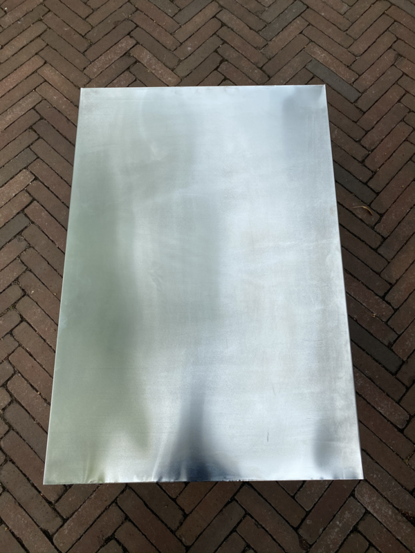 - Zink over lange kant 2 x 4 cm 90 graden omgezet - rand zijkant en onderkant. (bij houten bladen met zink bekleed*)